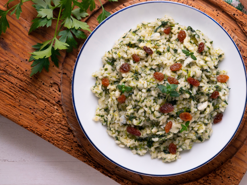 Preaqueça a airfryer por cinco minutos a 180 °C. Coloque os pimentões, a cenoura, a cebola e o alho, todos bem picadinhos. Regue com azeite e leve para refogar por cinco minutos. Acrescente as uvas passas, o arroz, o sal e misture bem. Adicione a água fervente e mexa. Cozinhe por quinze minutos ou até que o arroz fique no ponto desejado.