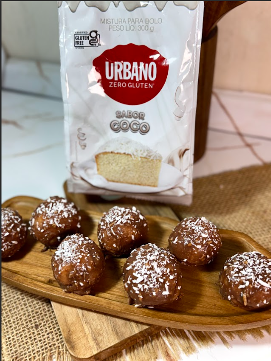 Prepare a Mistura para Bolo Sabor Coco Urbano conforme as instruções da embalagem. Leve para assar em forno preaquecido a 180 °C por aproximadamente 30 minutos. Em um recipiente, esfarele o bolo já assado. Acrescente o leite condensado e o coco ralado, misturando até obter uma massa consistente. Modele pequenas bolinhas e leve ao freezer por cerca de 20 minutos. Banhe as bolinhas no chocolate derretido e deixe secar. Bom apetite!