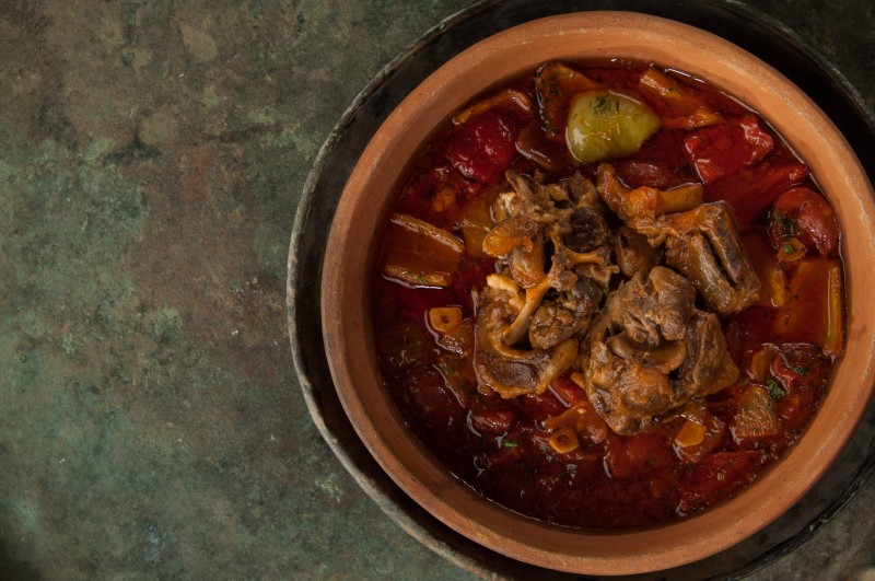Então entre com o vinho. Assim que o álcool evaporar, junte o caldo e tempere com sal, pimenta e cominho.