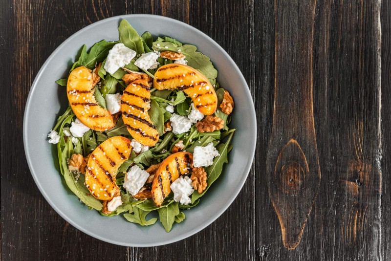 Salada de rúcula com pêssego grelhado