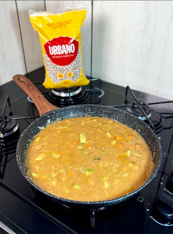 Cozinhe o Feijão Carioca Urbano, temperando da forma que você já está acostumado até os grãos ficarem bem macios. Em outra panela, doure a cebola no azeite. Acrescente 1 xícara de abobrinha picada e 1 xícara de cenoura picada, e deixe refogar bem. Enquanto isso, bata o feijão cozido com o mix até obter uma consistência cremosa. Misture o feijão batido com os legumes refogados, adicione um pouco de água para ajustar a textura e tempere a gosto. Mexa bem até tudo ficar homogêneo e aquecido. Sirva quentinho. Bom apetite!